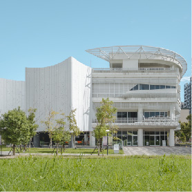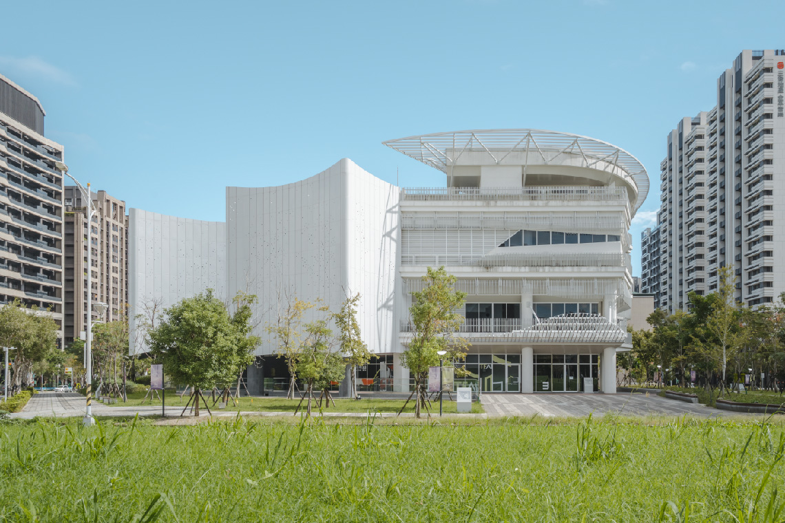 面國中小預定地,永久觀景建築。背倚公園綠地,延伸中庭綠帶自然視野。